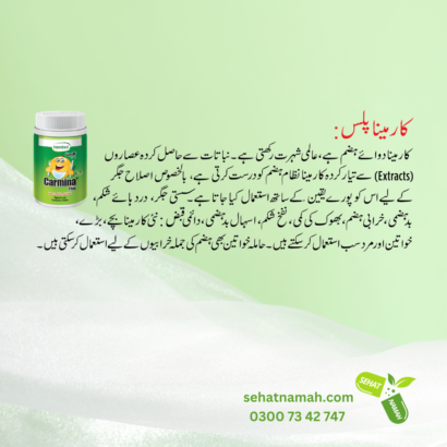 Carmina Plus – Hamdard is listed on SehatNamah.com website for sale, and SehatNamh.com is the delivery service provider/partner to deliver the required product or medicine. Always seek guidance from licensed healthcare professionals for specific health concerns. The information provided on SehatNamah.com is intended for general informational purposes only. SehatNamah.com is not the manufacturer of the products listed on our platform but just a deliver service / delivery partner for the required product or medicine. While we strive to ensure the accuracy of the product details presented, manufacturers may update or alter their product formulations, packaging, or related materials. As such, the actual product information may vary from what is displayed on our website.