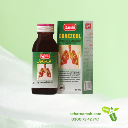 Corezcol is a powerful herbal syrup specifically formulated to combat whooping cough, persistent cough, asthmatic cough, and acute bronchitis. It acts as an expectorant, helping to clear mucus from the respiratory tract, and provides relief from shortness of breath, throat inflammation, and irritation.