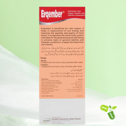 Erqember is a natural tonic formulated to revitalize vital organs and restore overall vitality. This herbal preparation enhances energy levels, promotes blood production, and boosts immunity. Designed to combat lethargy, weakness, and general debility, Erqember strengthens the heart, liver, and brain, ensuring sustained well-being.