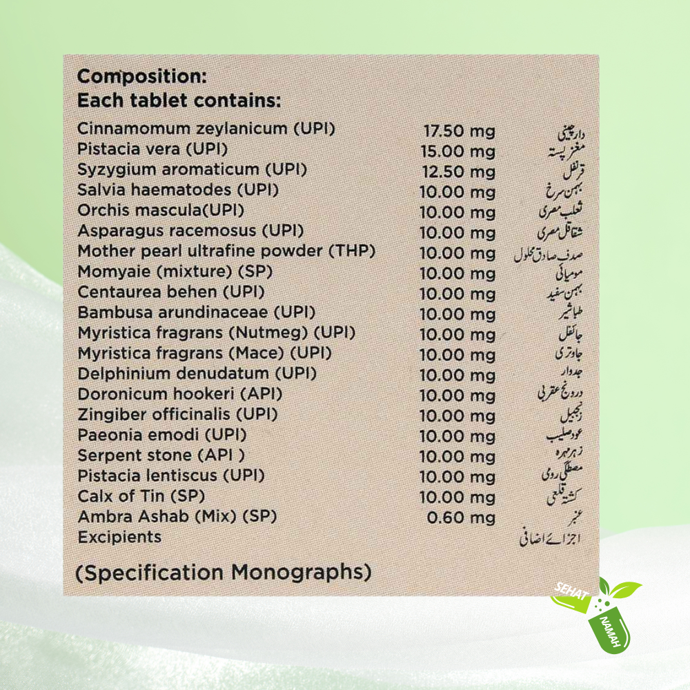 Habb-e-Amber Momyaie combines various herbal ingredients that work synergistically to enhance sexual vitality. The active compounds in these herbs improve circulation, promote healthy sexual function, and stimulate the reproductive organs. Additionally, the nervine tonics help reduce stress and nervous exhaustion, which are often contributors to sexual dysfunction.