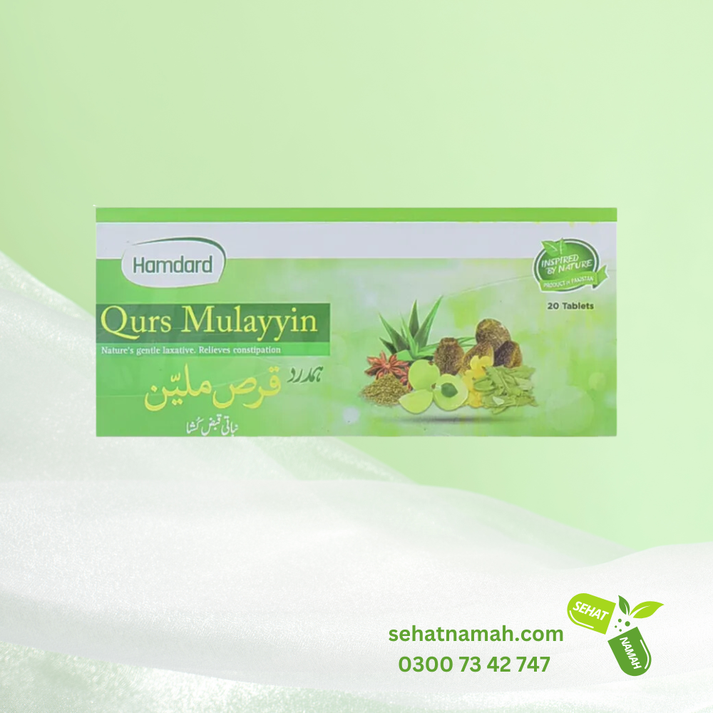 Hamdard Qurs Mulayyin is a trusted herbal laxative formulated to provide relief from constipation and a variety of digestive issues. It is also beneficial in addressing appetite loss, liver and stomach weakness, gastritis, and abdominal discomfort. This herbal remedy works as a purgative, effectively expelling bilious, melancholic, and phlegmatic waste from the body.