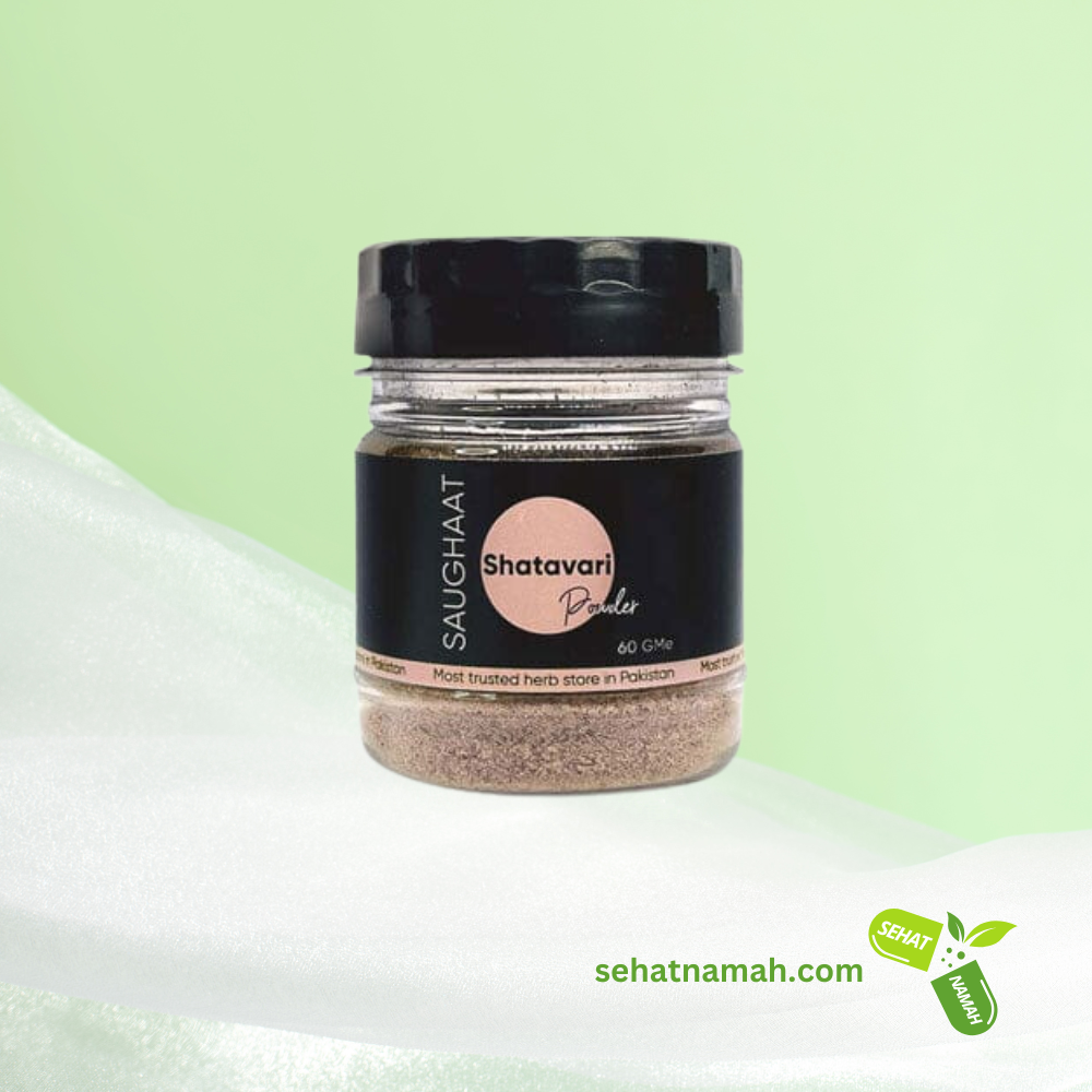 Shatavari (Satawar) Powder, 60g – Saughaat is listed on SehatNamah.com website for sale, and SehatNamh.com is the delivery service provider/partner to deliver the required product or medicine. Always seek guidance from licensed healthcare professionals for specific health concerns. The information provided on SehatNamah.com is intended for general informational purposes only. SehatNamah.com is not the manufacturer of the products listed on our platform but just a deliver service / delivery partner for the required product or medicine. While we strive to ensure the accuracy of the product details presented, manufacturers may update or alter their product formulations, packaging, or related materials. As such, the actual product information may vary from what is displayed on our website.