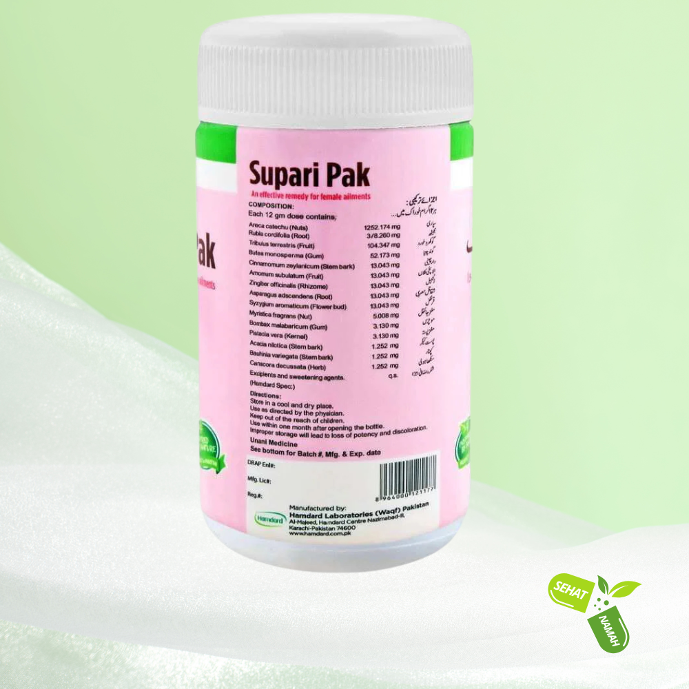 Supari Pak is a time-tested herbal remedy specifically formulated to address female reproductive health issues. It effectively tones the uterus, helps stop excessive fluid discharge, and is particularly useful for treating leucorrhoea—a common condition involving excessive vaginal discharge.